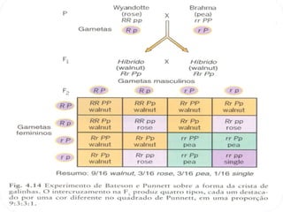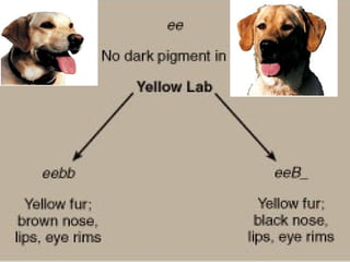 3) O documento também explica o conceito de epistasia, quando a expressão de um gene é modificada pela presença ou ausência de outro gene não alelo.