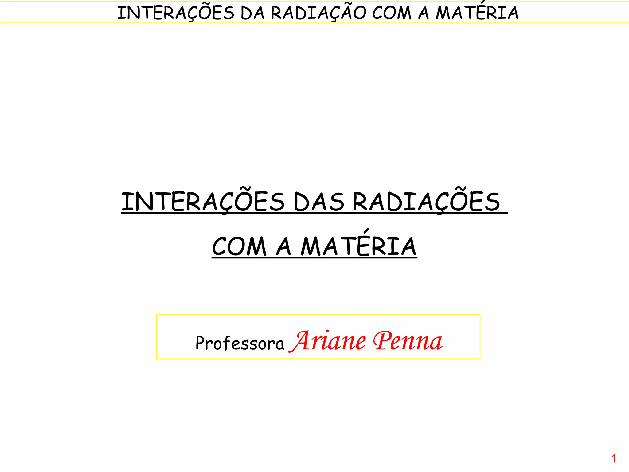 O documento discute as interações entre radiação e matéria, explicando como a radiação pode ser transmitida, atenuada ou absorvida por diferentes materiais. Também define termos como excitação, ionização e camada semi-redutora, e descreve como a atenuação da radiação depende do material e energia dos fótons incidentes.