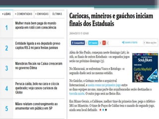 O documento discute o conceito de interatividade no jornalismo e como ele vem evoluindo com o avanço da tecnologia. A interatividade permite diferentes níveis de participação do leitor, desde comentários até a produção de conteúdo. As redes sociais também transformaram a interação entre jornalistas e público.