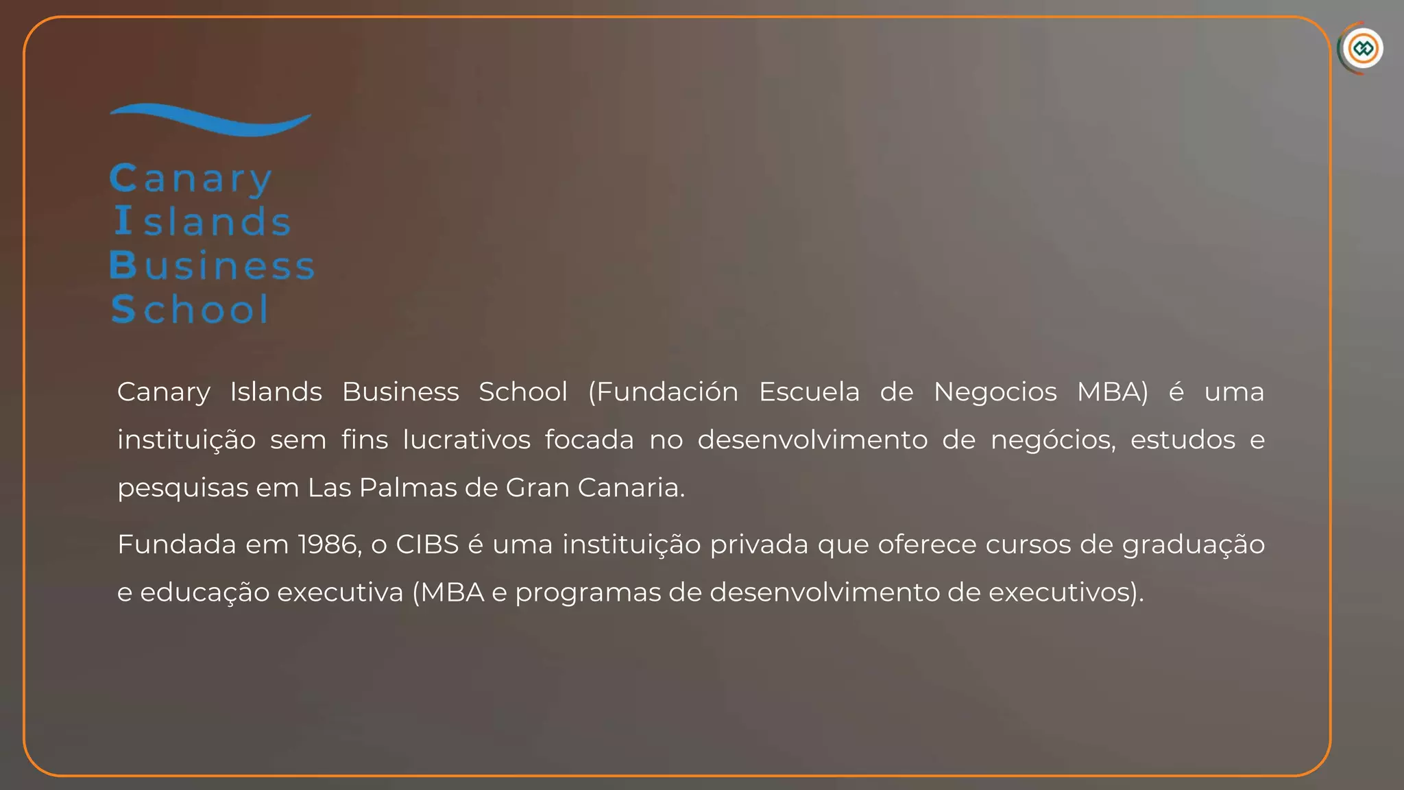 1) A Canary Islands Business School, uma instituição privada de ensino superior na Espanha fundada em 1986 que oferece cursos de graduação e pós-graduação.