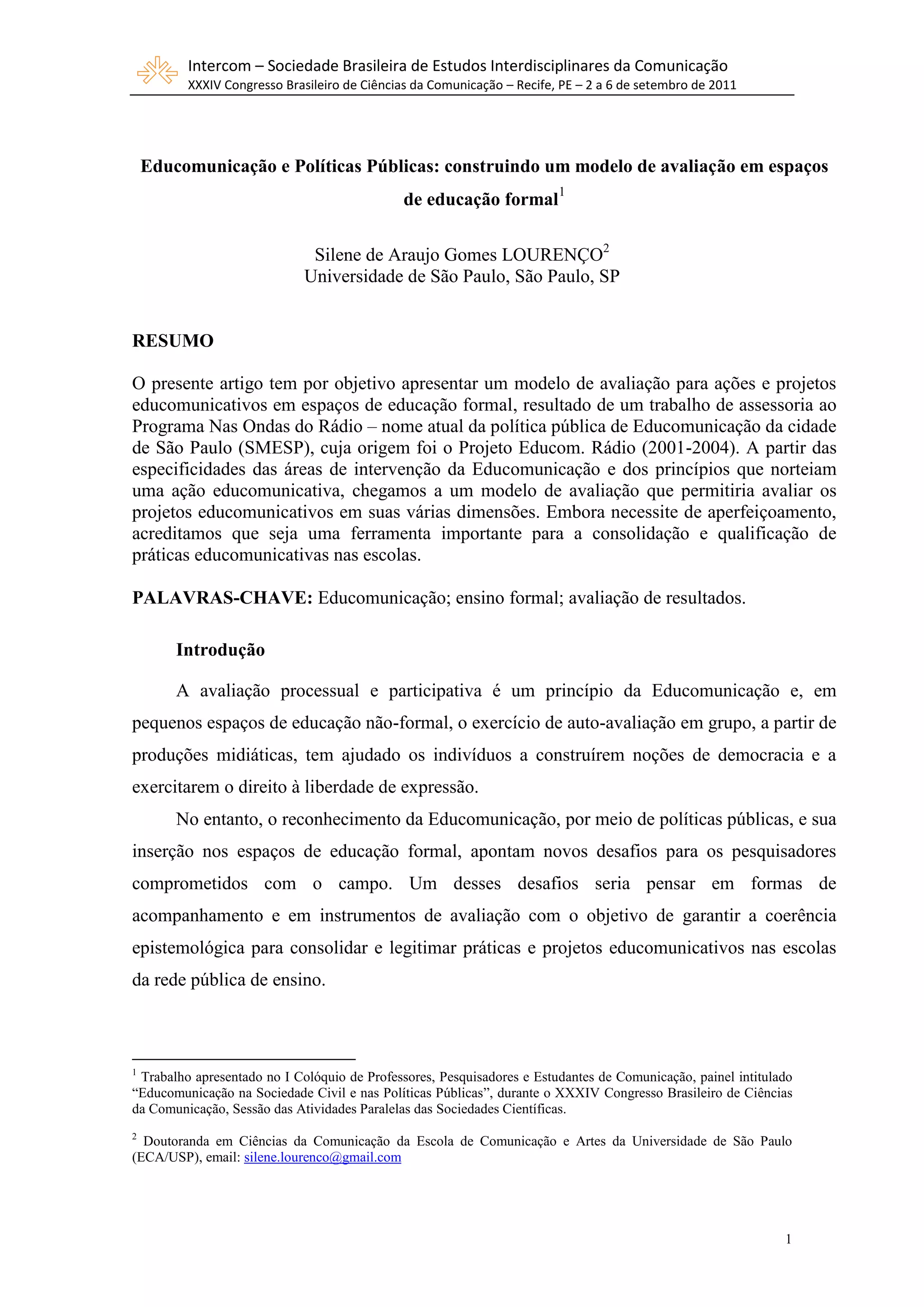 Este documento discute um modelo de avaliação para projetos de educação midiática em escolas brasileiras. O modelo foi desenvolvido com base nas áreas de intervenção da educação midiática e seus princípios, como educação crítica de mídia, produção midiática coletiva e gestão democrática de recursos. O modelo avalia projetos em várias dimensões como desenvolvimento de análise crítica de mídia, empoderamento dos alunos e promoção do diálogo. Embora necessite de aprimoramento, o modelo pode ajudar a consolidar e qual