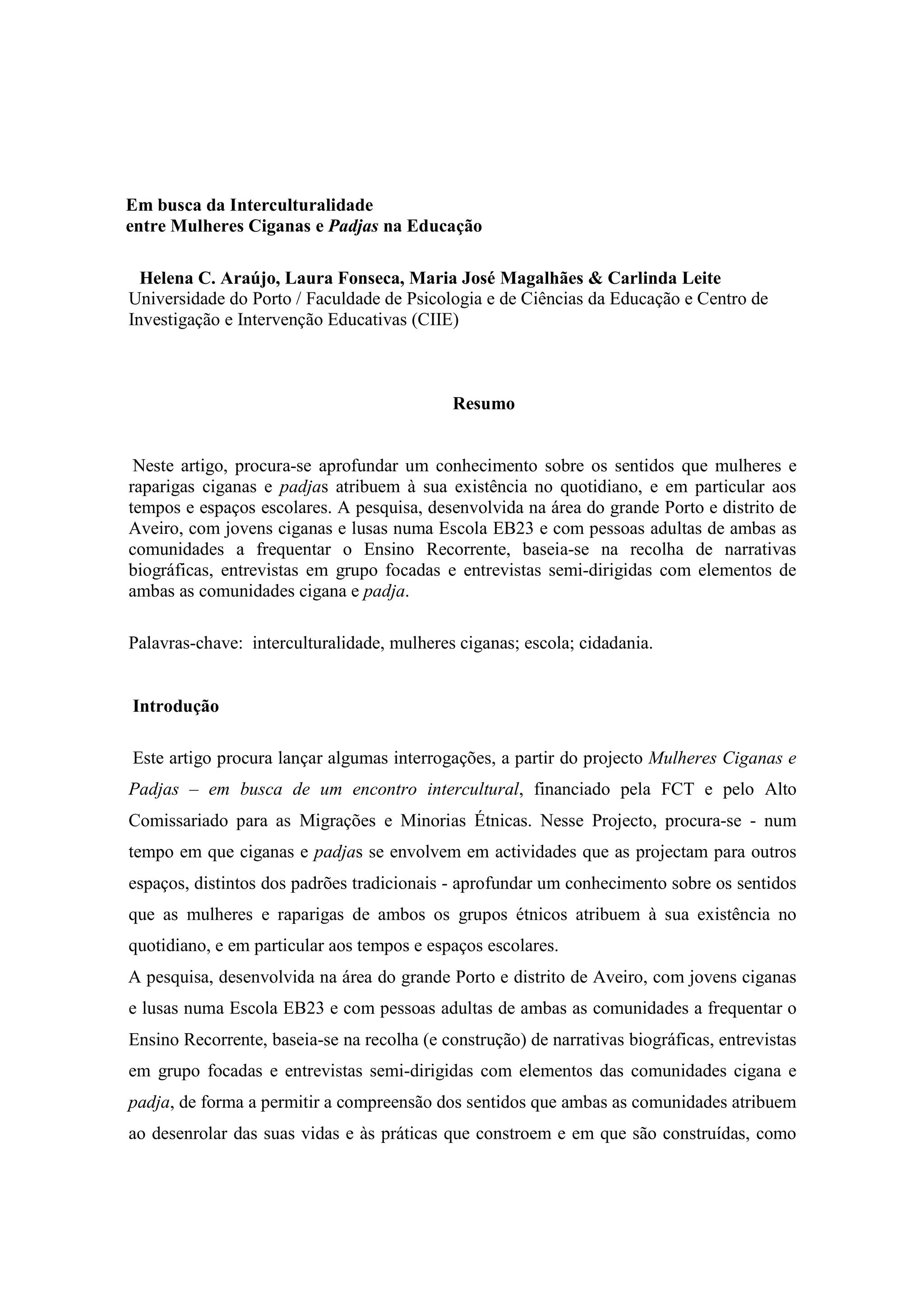 Este documento discute as relações interculturais entre mulheres ciganas e não-ciganas na educação. Ele explora como a escola pode ser um espaço para o encontro intercultural entre as duas comunidades e como as experiências das mulheres de ambos os grupos étnicos podem contribuir para reformular os currículos escolares. O documento também examina como o gênero e a cultura cigana influenciam as experiências educacionais das mulheres ciganas.