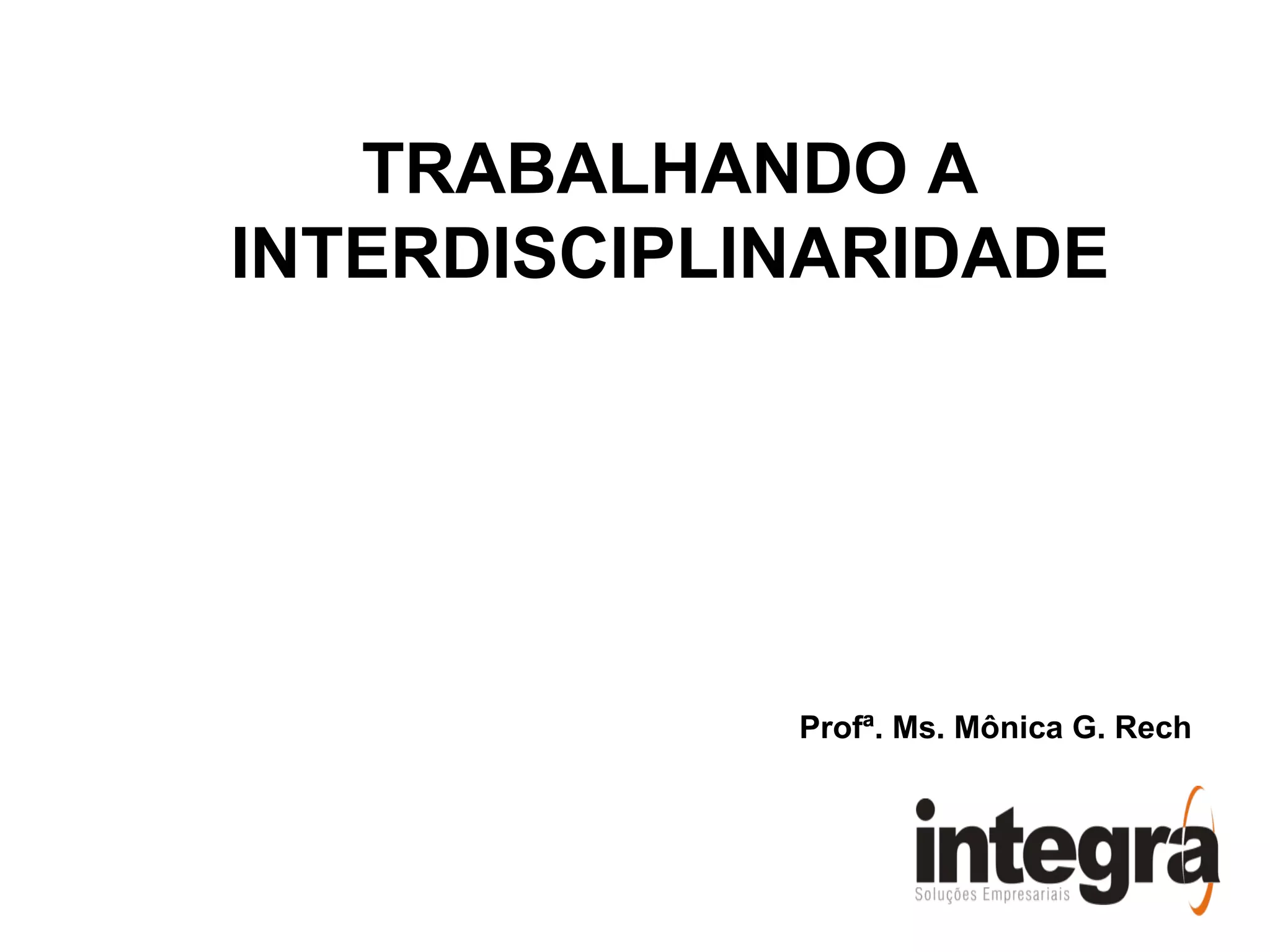 O documento discute a importância da interdisciplinaridade no ensino, definindo-a como a construção de um conhecimento que rompe os limites das disciplinas isoladas. A metodologia do trabalho interdisciplinar envolve a integração de conteúdos entre as disciplinas e uma visão unitária do conhecimento. Exemplos de projetos interdisciplinares são fornecidos envolvendo diferentes áreas como ciências, matemática e geografia.
