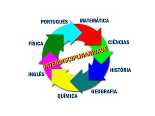 O documento discute a interdisciplinaridade na prática pedagógica do educador como um elemento que possibilita a formação cidadã e inclusão social. Apresenta os conceitos de multidisciplinaridade, pluridisciplinaridade, interdisciplinaridade e transdisciplinaridade e como cada um promove diferentes níveis de integração entre disciplinas. Defende que a metodologia interdisciplinar integra conteúdos e sujeitos envolvidos, promovendo uma visão unitária do conhecimento.