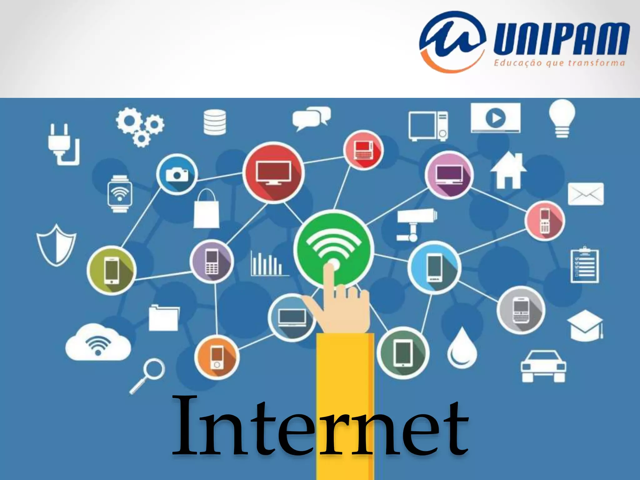 A Internet é uma rede mundial de computadores que utilizam o protocolo TCP/IP para comunicação. Sua estrutura física inclui cabos de fibra óptica e estruturas de telecomunicações. O backbone é a espinha dorsal da rede, responsável por altos débitos de transferência entre regiões. A WWW permite acesso a documentos hipermidiáticos através de navegadores, enquanto URLs localizam recursos por domínio, caminho e protocolo.