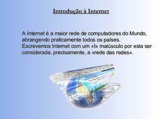 O documento resume os principais conceitos sobre a Internet: