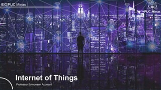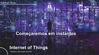 Este documento fornece informações sobre um curso de Internet das Coisas (IoT) ministrado pelo professor Symonsen Acorroni na PUC Minas, incluindo a programação das aulas, orientações gerais e uma breve introdução sobre o professor.