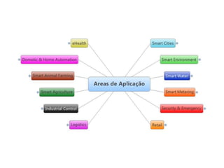 A Internet das Coisas é uma infraestrutura global que permite a comunicação entre objetos físicos e virtuais através de protocolos padronizados. Ela conecta coisas como eletrodomésticos, veículos e outros dispositivos à Internet, permitindo que coletam e compartilham dados. A Internet das Coisas tem aplicações em automação residencial e industrial e está relacionada a tecnologias como computação em nuvem e big data.