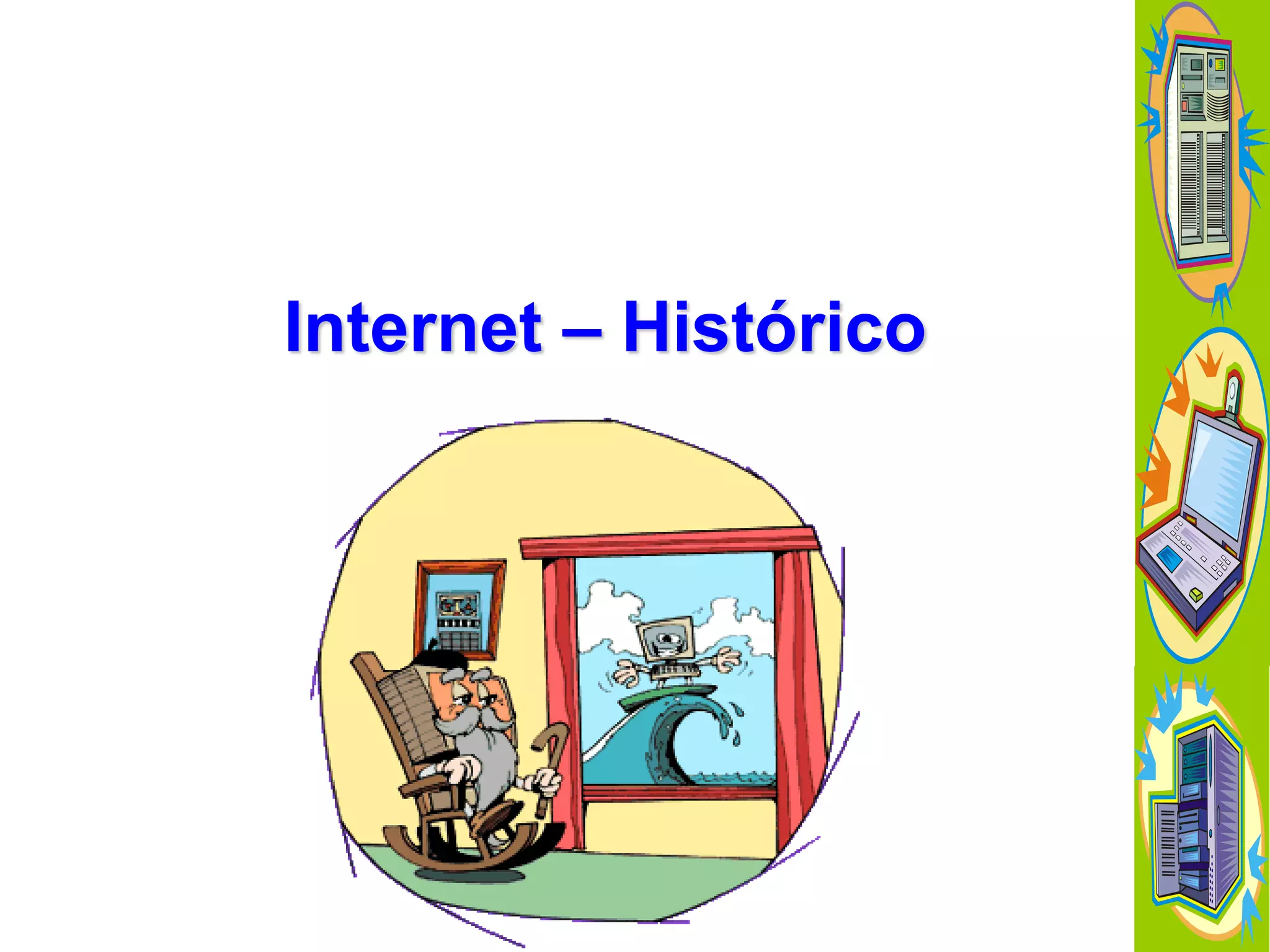 O documento fornece um resumo histórico da Internet, desde sua criação como a rede ARPANET pelo Departamento de Defesa dos EUA em 1969 até sua expansão global nos anos 90. Detalha também os principais serviços disponíveis na Internet como a World Wide Web, correio eletrônico e motores de pesquisa.