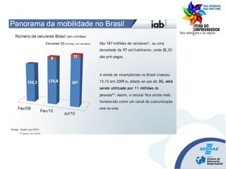 O documento discute as vantagens do e-commerce em comparação ao varejo físico, destacando custos baixos, abrangência e maior ticket médio. Ele também menciona a importância da entrega no prazo e do atendimento ao cliente para a fidelização, além de prever um crescimento significativo do setor em 2010. Além disso, são mencionados novos modelos de negócios, como sites de compras coletivas, que têm atraído investimentos no Brasil.