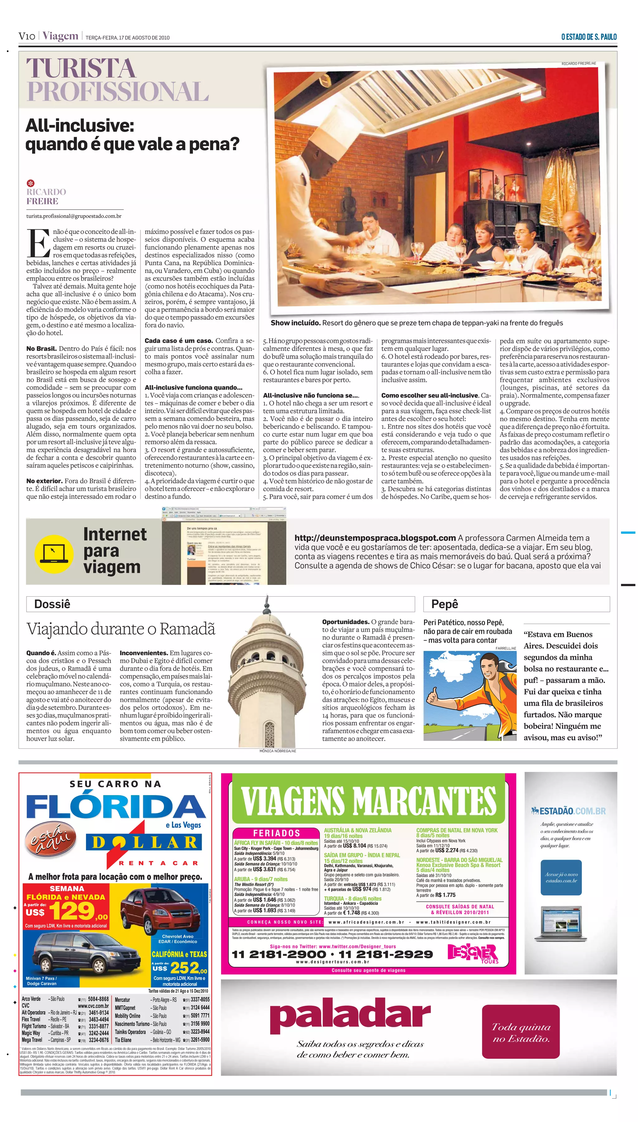 O documento discute quando o sistema all-inclusive de hospedagem vale a pena para turistas. Lista situações em que o all-inclusive funciona bem, como quando se viaja com crianças ou para beber sem culpa, e quando não funciona tão bem, como para quem gosta de sair do hotel. Também dá dicas para escolher um bom hotel all-inclusive.
