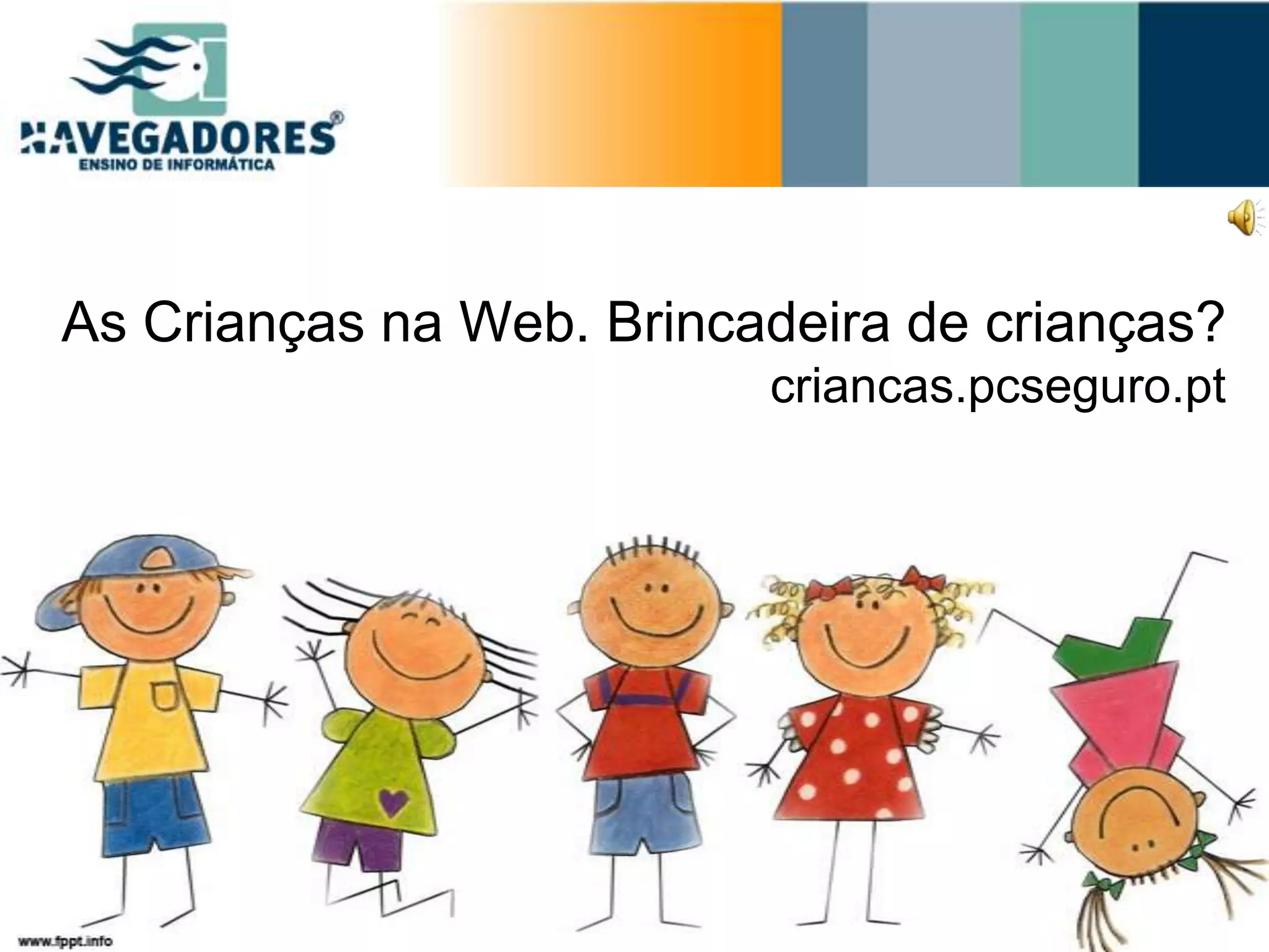 O documento discute os riscos que as crianças enfrentam online e como se proteger, incluindo não falar com estranhos, fornecer pouca informação pessoal e pedir permissão aos pais antes de baixar arquivos. Ele também descreve como a internet pode ser usada para comunicação e diversão de forma segura através de mensagens instantâneas, e-mail e redes sociais quando se seguem conselhos de segurança.