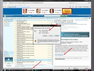 Cartilhas sobre segurançae ética na Internet Hackerteen : http://www.hackerteen.com.br/pdf/cartilha.pdf Cert.Br : http://cartilha.cert.br/download/old/cartilha_seguranca_1.0.pdf Proeb/GVT : www.prodeb.gov.br/ cartilha _uso_responsavel_da_ internet .pdf www. denunciar .org.br www.safernet.org.br Denuncie Safernet : https://www.safernet.org.br/twiki/bin/view/SaferNet/CartilhaDialogoVirtual