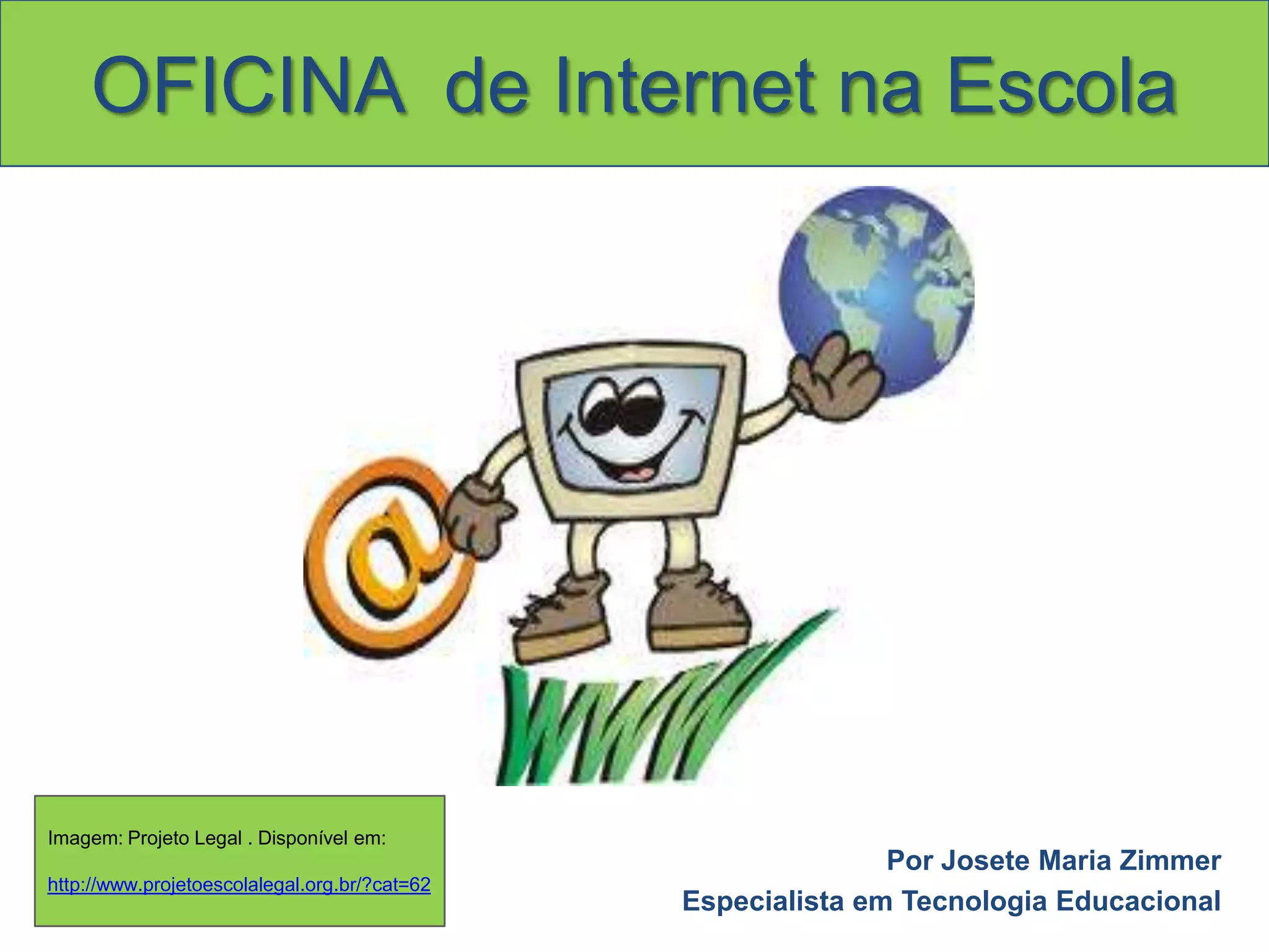 Este documento fornece orientações para uma oficina sobre como usar a internet na sala de aula. Ele explica como os professores podem pesquisar sites relevantes para seus temas, criar tarefas para os alunos com esses sites, e compartilhar seus achados com outros professores.