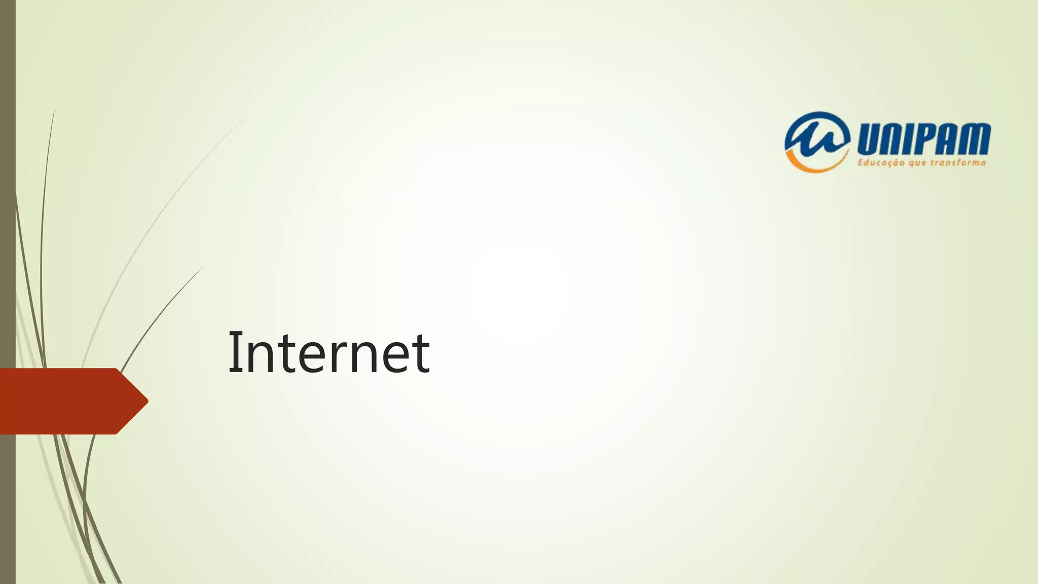 O documento discute conceitos sobre a Internet, incluindo sua estrutura física, WWW, navegadores, domínios, URLs, intranets, extranets e ameaças virtuais. Ele também fornece dicas sobre segurança na Internet, como criar senhas fortes e manter softwares atualizados.
