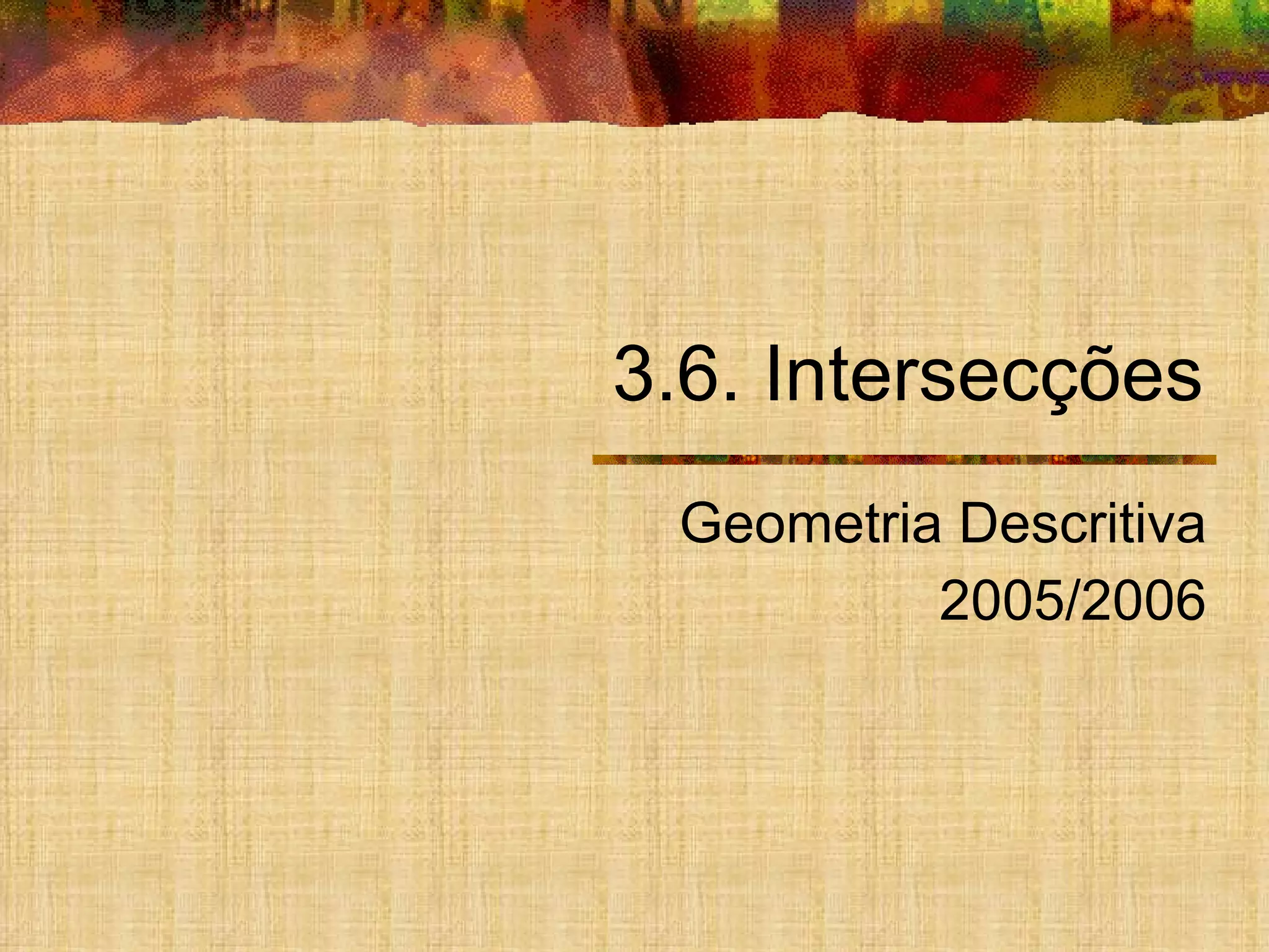 1) O documento descreve vários tipos de intersecções geométricas em geometria descritiva, incluindo intersecções de retas e planos.