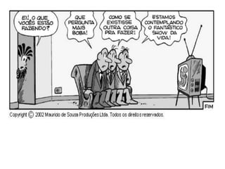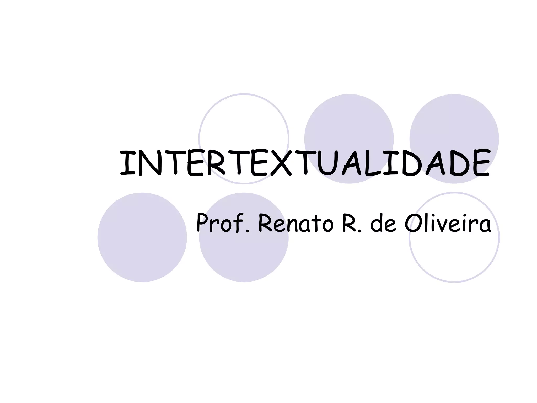 O documento discute a intertextualidade como diálogo entre textos onde um texto incorpora trechos ou referências de outros textos. A intertextualidade pode ocorrer de diferentes formas como citação, alusão e paródia e está presente em diversos gêneros textuais como poesia, música e propaganda.