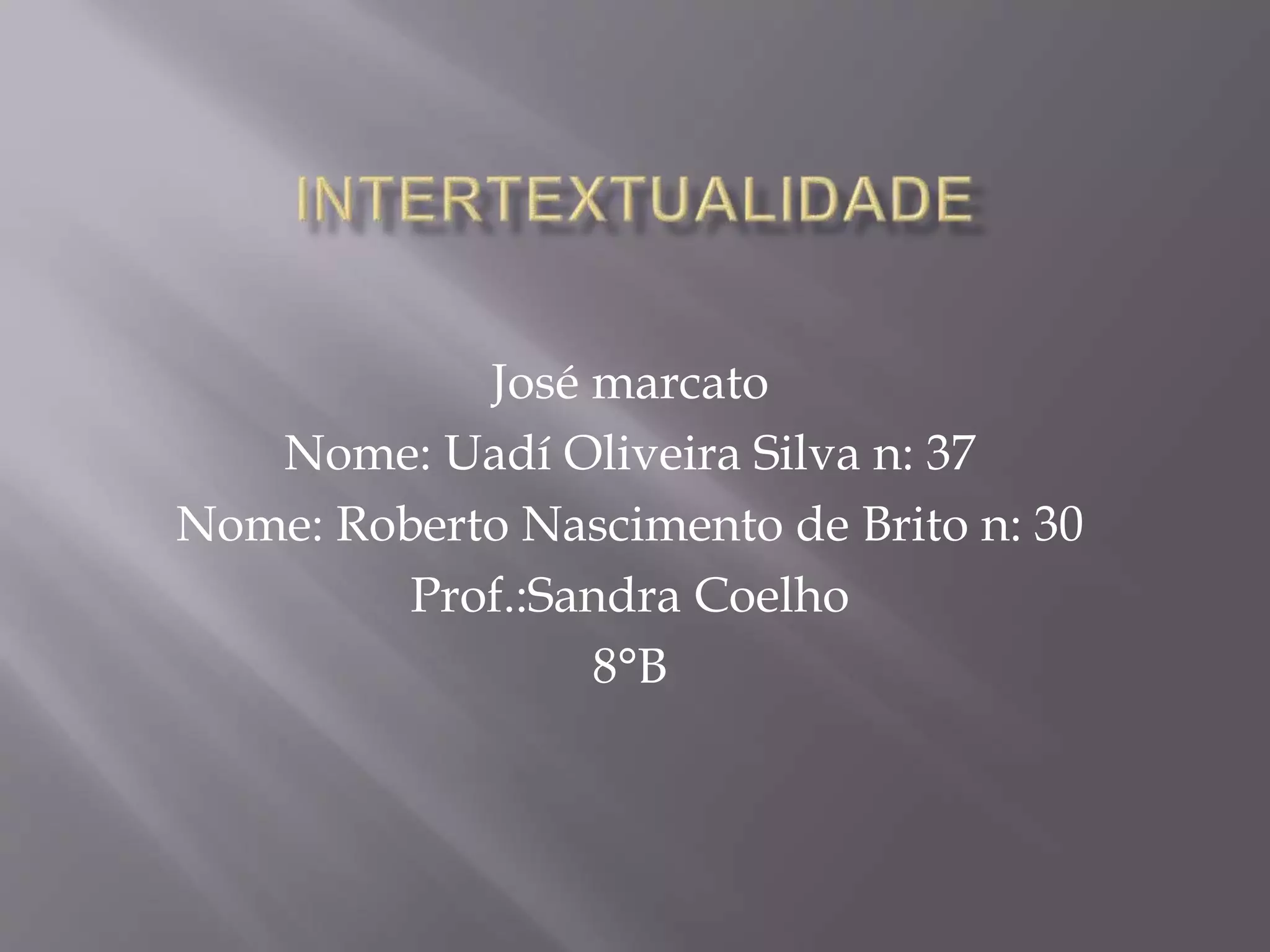O documento discute o conceito de intertextualidade, fornecendo exemplos de como um texto pode se referir ou se sobrepor a outro texto pré-existente através de alusões, citações ou paródias. Exemplos de obras intertextuais incluem o livro "Mensagem" de Fernando Pessoa, que retoma o episódio do Gigante Adamastor de "Os Lusíadas" de Camões.