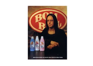 O documento discute como a intertextualidade e o ready-made podem ser usados na criação publicitária. A intertextualidade recorre ao conhecimento prévio do público-alvo através de citações ou alusões a outros textos. O ready-made desloca frases ou imagens já familiares para novos contextos publicitários. Exemplos demonstram como anúncios parodiam uns aos outros ou usam elementos culturais de forma inovadora.