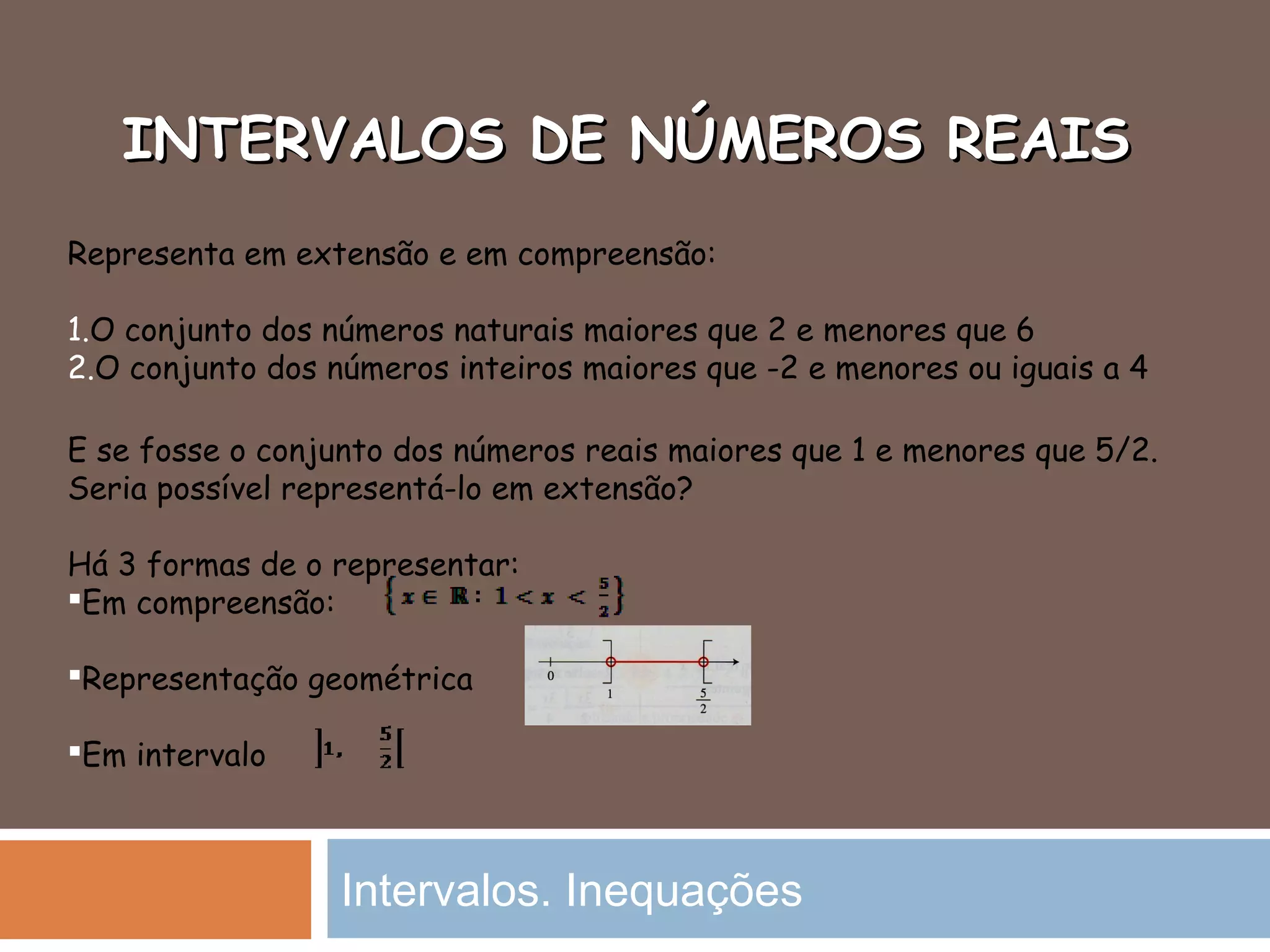 1) O documento discute intervalos de números reais e como representá-los em extensão e compreensão. 2) Explica como encontrar a interseção e união de intervalos. 3) Demonstra como resolver inequações do primeiro grau, incluindo aquelas com parênteses e denominadores.