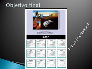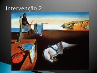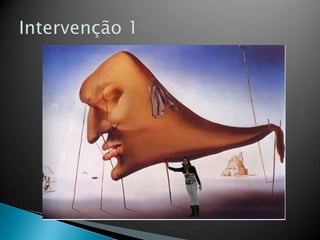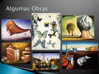 O documento descreve a vida e obra do pintor catalão Salvador Dalí, conhecido por seu trabalho surrealista. Seu trabalho mais famoso foi A Persistência da Memória, concluído em 1931, e explorou outros meios artísticos como cinema, escultura e fotografia. Dalí insistia em suas raízes árabes e sua personalidade excêntrica às vezes ofuscava sua arte.