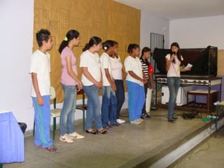 O documento lista o elenco e equipe de um teatro sobre desperdício de alimentos na EMEF "Madre Joana Angélica de Jesus". A apresentação contou com a participação especial da presidente da Associação de Bairro Vitória, Rita Firmino, e do palestrante Luiz Carlos da Silva. O link para assistir ao vídeo do teatro na internet é fornecido.