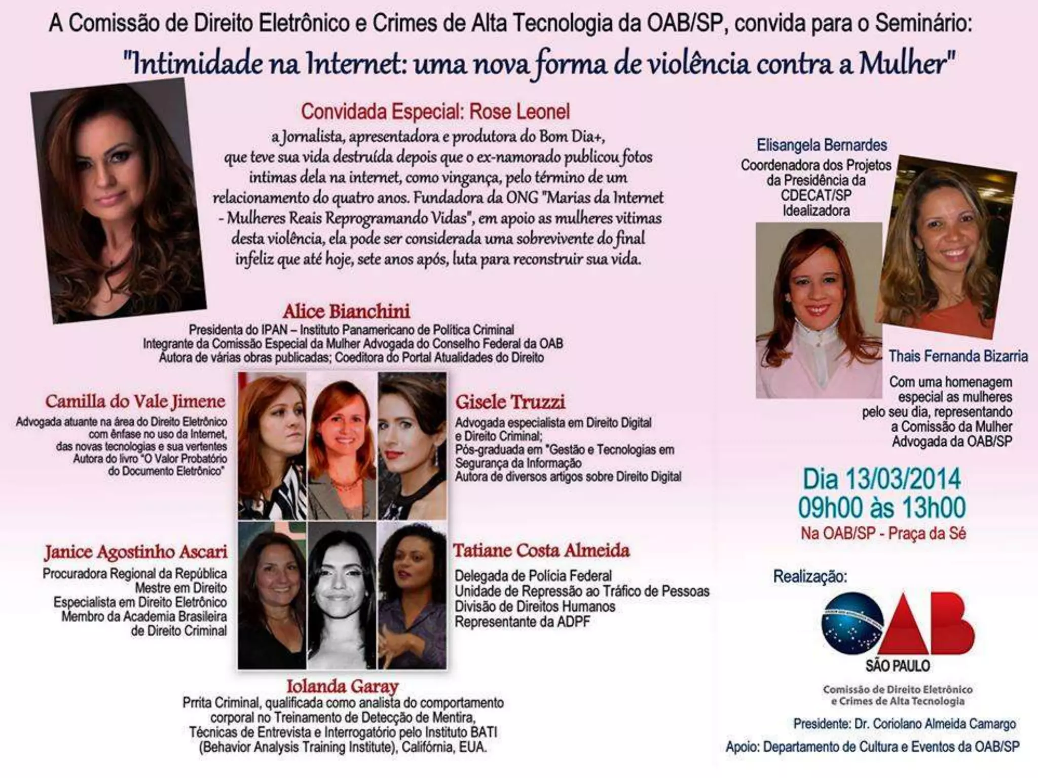 Intimidade na internet: uma nova forma de violência contra a mulher. Slides apresentados no Seminário organizado pela OAB/SP –, ocorrido em 13 de março de 2014.