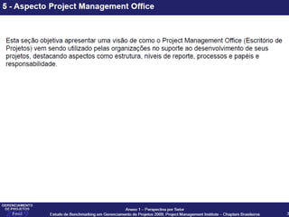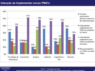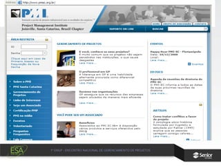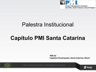 O documento apresenta informações sobre o Capítulo PMI Santa Catarina, incluindo sua missão de promover a gestão de projetos na região, as atividades que realiza para associados como palestras e eventos, e os benefícios da associação como acesso a publicações e rede de contatos.