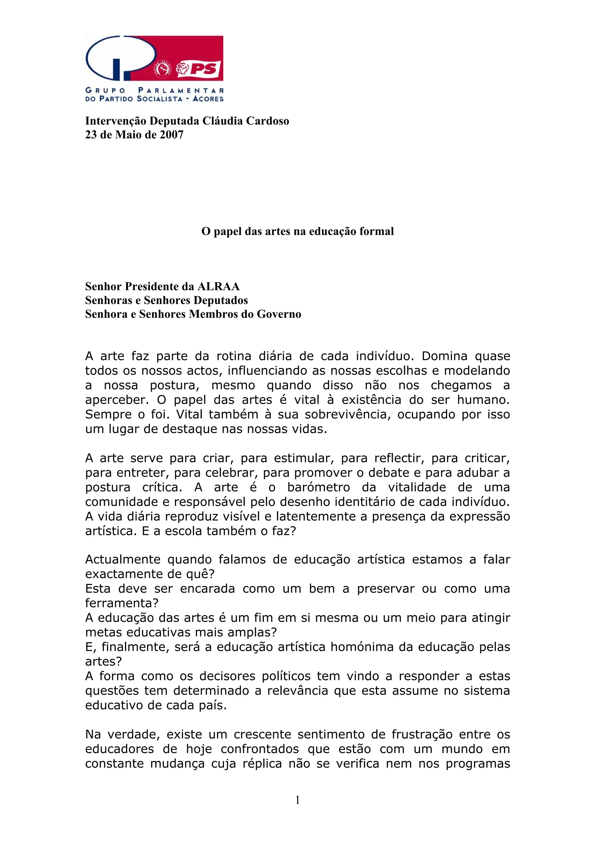2) Atualmente, Portugal e os Açores têm feito esforços para melhorar o ensino artístico, porém ele ainda é tratado como opcional e não integrado ao currículo regular;
