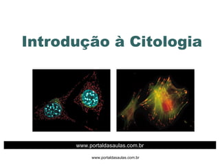 O documento descreve a história da descoberta da célula e da teoria celular, desde as primeiras observações de células com microscópios no século XVI até a formulação da teoria celular por Schleiden e Schwann no século XIX. Também resume as principais estruturas internas das células eucariontes, como o núcleo, retículo endoplasmático, complexo de Golgi, lisossomos, peroxissomos e mitocôndrias.