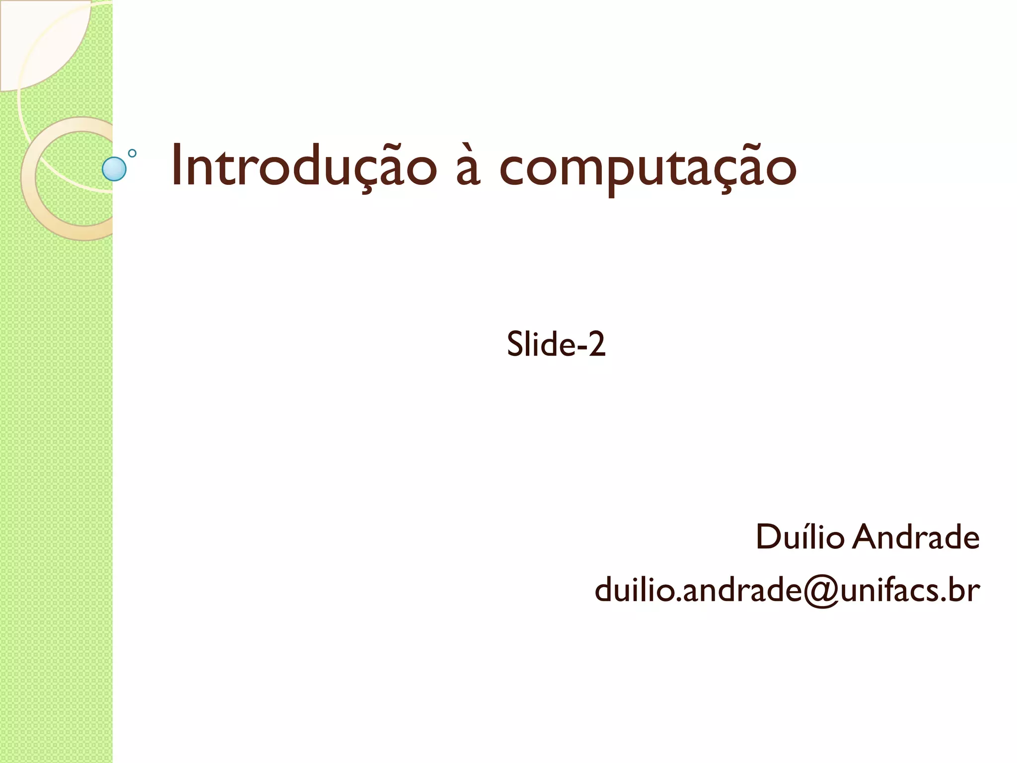 O documento discute a representação e organização básica de dados em computadores. Aborda como caracteres, números e valores lógicos são representados digitalmente, incluindo ASCII, Unicode, complemento de um e dois. Também explica a arquitetura de Von Neumann e componentes básicos como CPU, memória e periféricos como monitor, teclado e impressora.