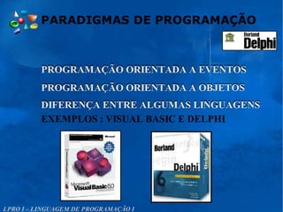 O documento aborda a linguagem de programação Delphi, enfatizando conceitos como programação orientada a objetos, estruturas de controle, manipulação de variáveis e tipos de dados no Object Pascal. Ele também discute características da IDE Delphi, incluindo o uso de componentes e opções de conectividade. Exemplos práticos são fornecidos para ilustrar a sintaxe e o funcionamento das funcionalidades da linguagem.