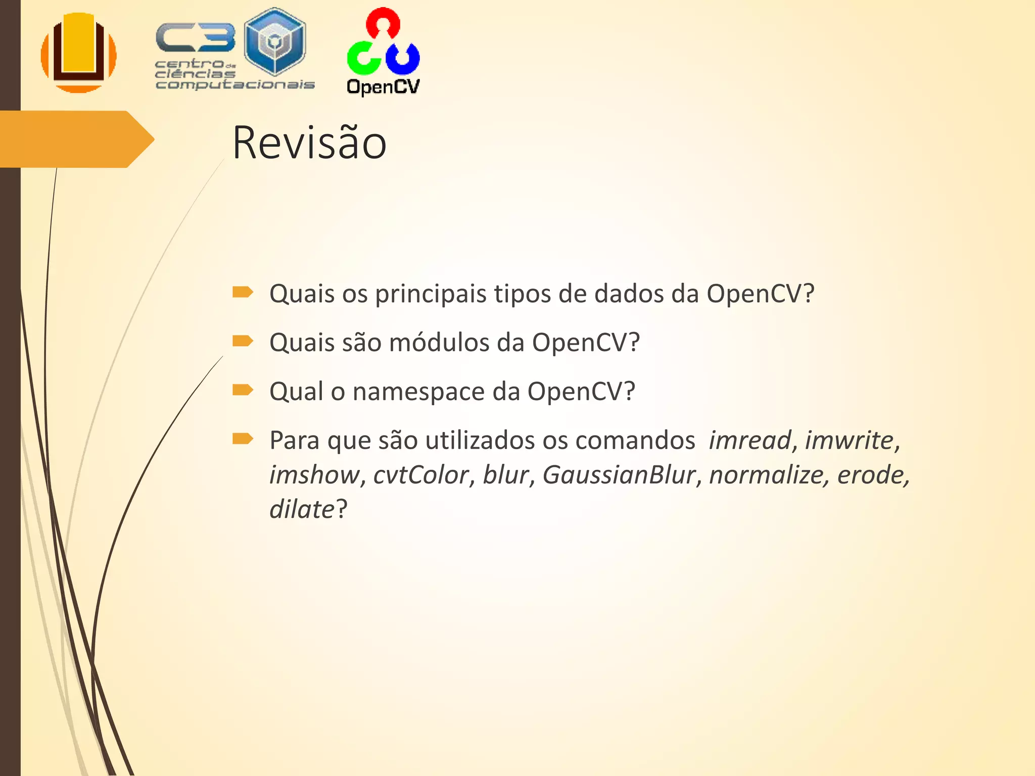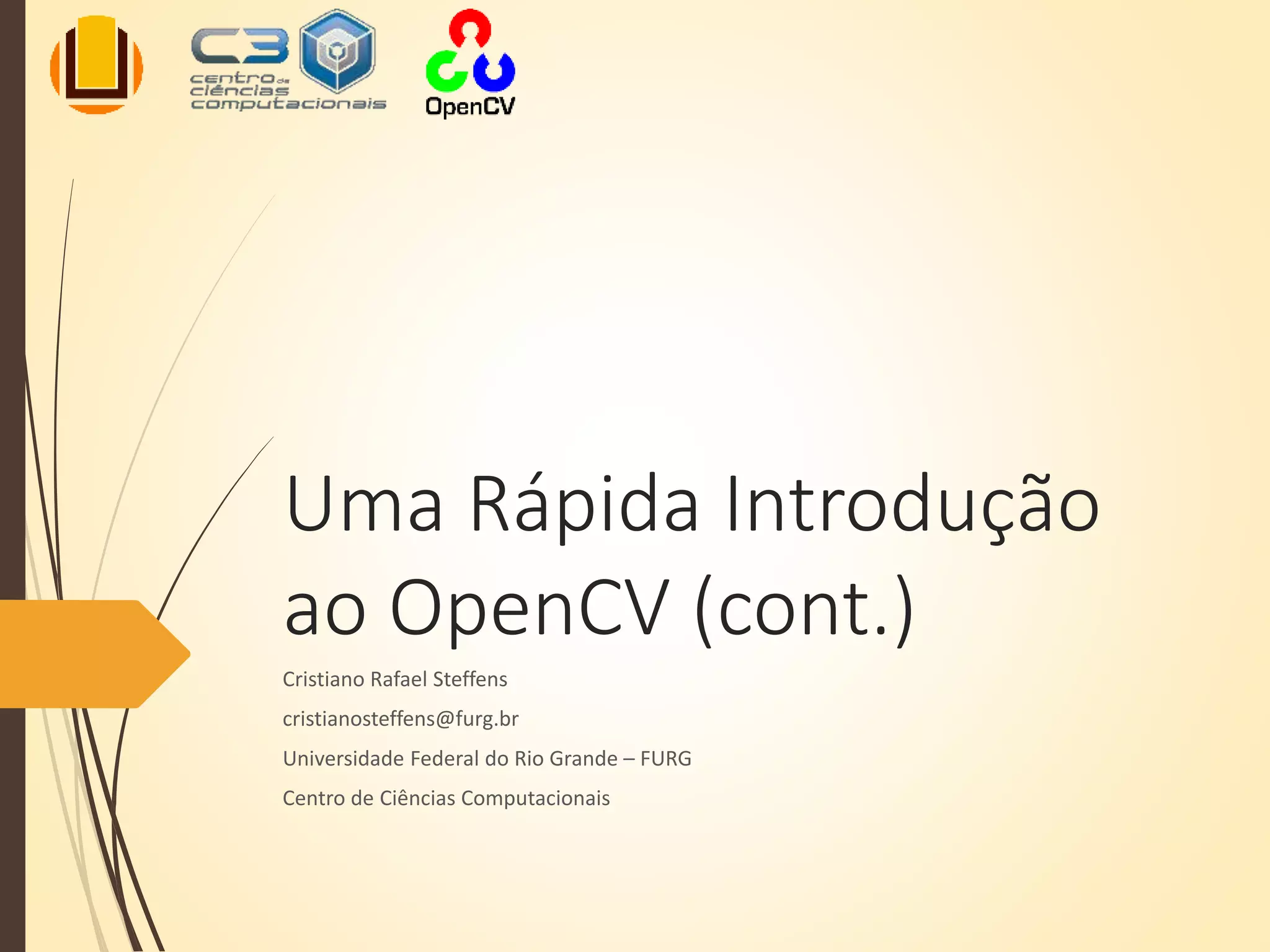 O documento apresenta uma introdução ao OpenCV, discutindo seus principais tipos de dados, módulos e namespaces. Também mostra exemplos de como desenhar formas geométricas, detectar círculos com transformada de Hough e trabalhar com vídeos e histogramas usando OpenCV.