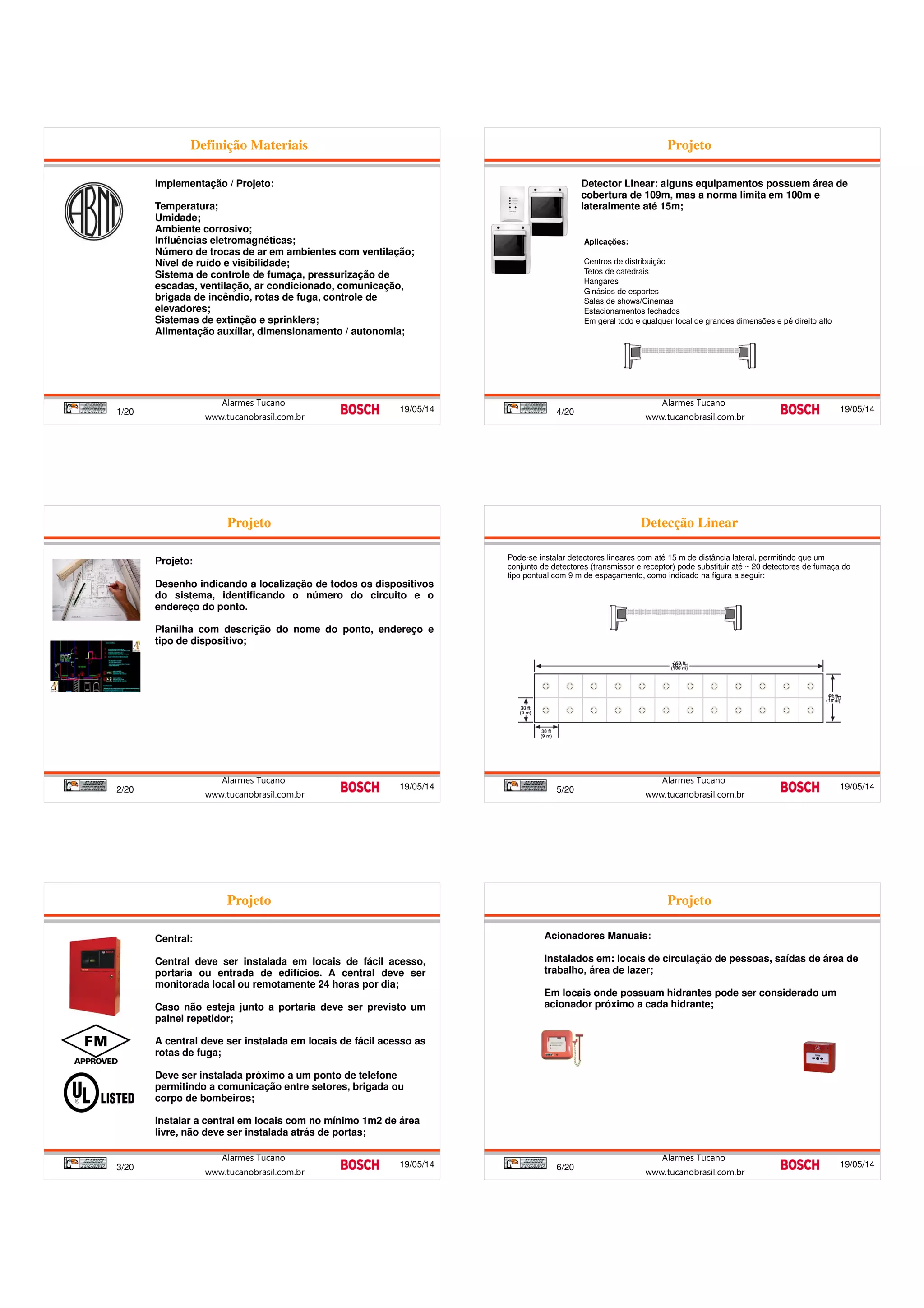O documento fornece diretrizes e especificações técnicas para projeto, implementação e manutenção de sistemas de alarme e detecção de incêndio, cobrindo tópicos como detecção, central de alarme, circuitos, interferência eletromagnética e normas aplicáveis.
