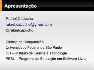 O documento é uma apresentação de Rafael Capucho, abordando sua experiência em programação e desenvolvimento web com várias linguagens. Ele discute aspectos técnicos como pacotes mínimos para desenvolvimento, cabeçalhos HTTP e servidores web, além de fornecer exemplos básicos de código em HTML, CSS e JavaScript. O conteúdo é voltado para iniciantes interessados em web development.