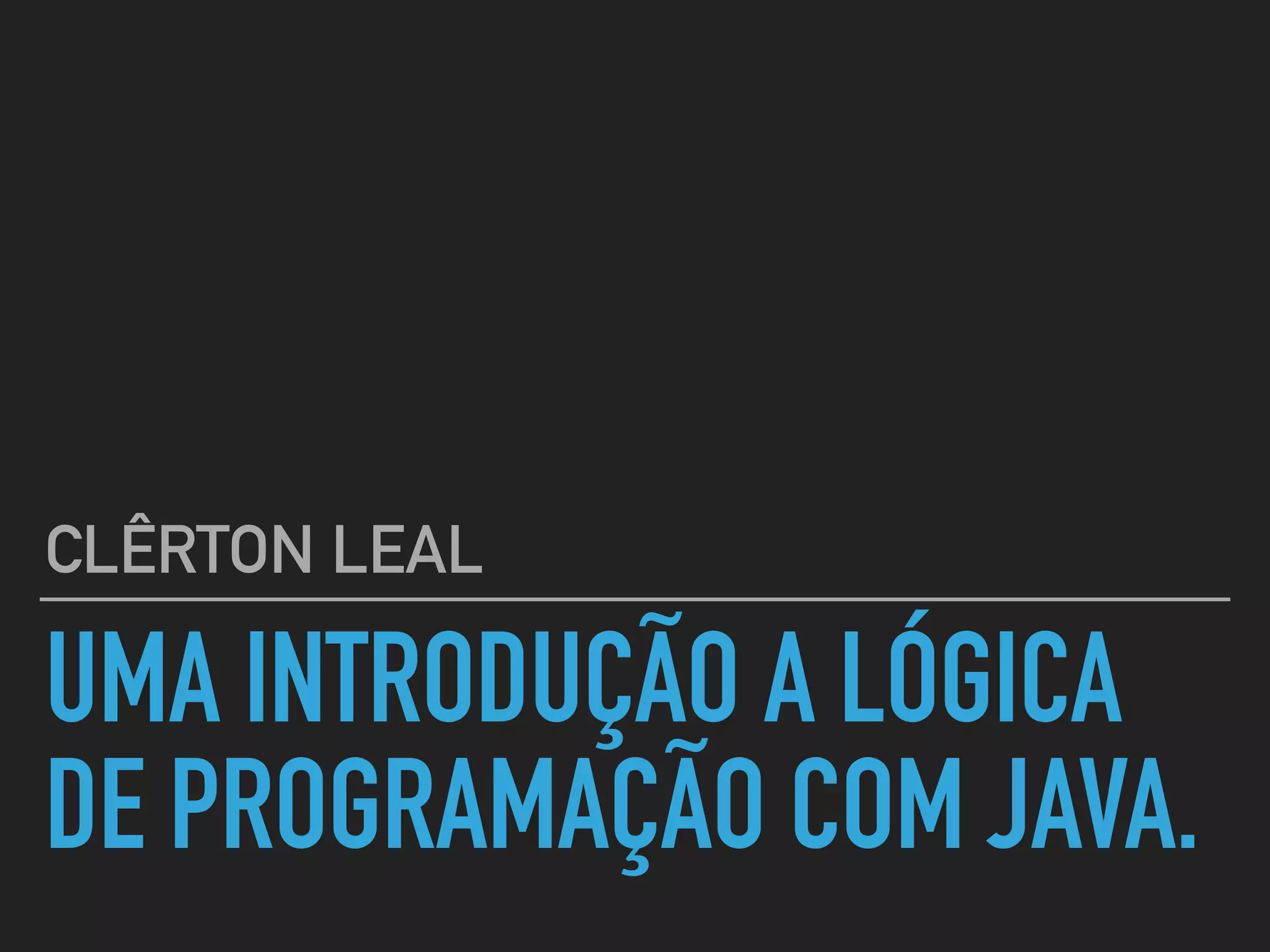 O documento apresenta uma introdução à lógica de programação utilizando Java, destacando conceitos essenciais como classes, objetos e tratamento de exceções. Clérton Leal compartilha sua experiência no desenvolvimento de software e orientações sobre como usar bibliotecas de terceiros para facilitar tarefas. Também inclui exemplos práticos de código e a importância dos modificadores de acesso em Java.