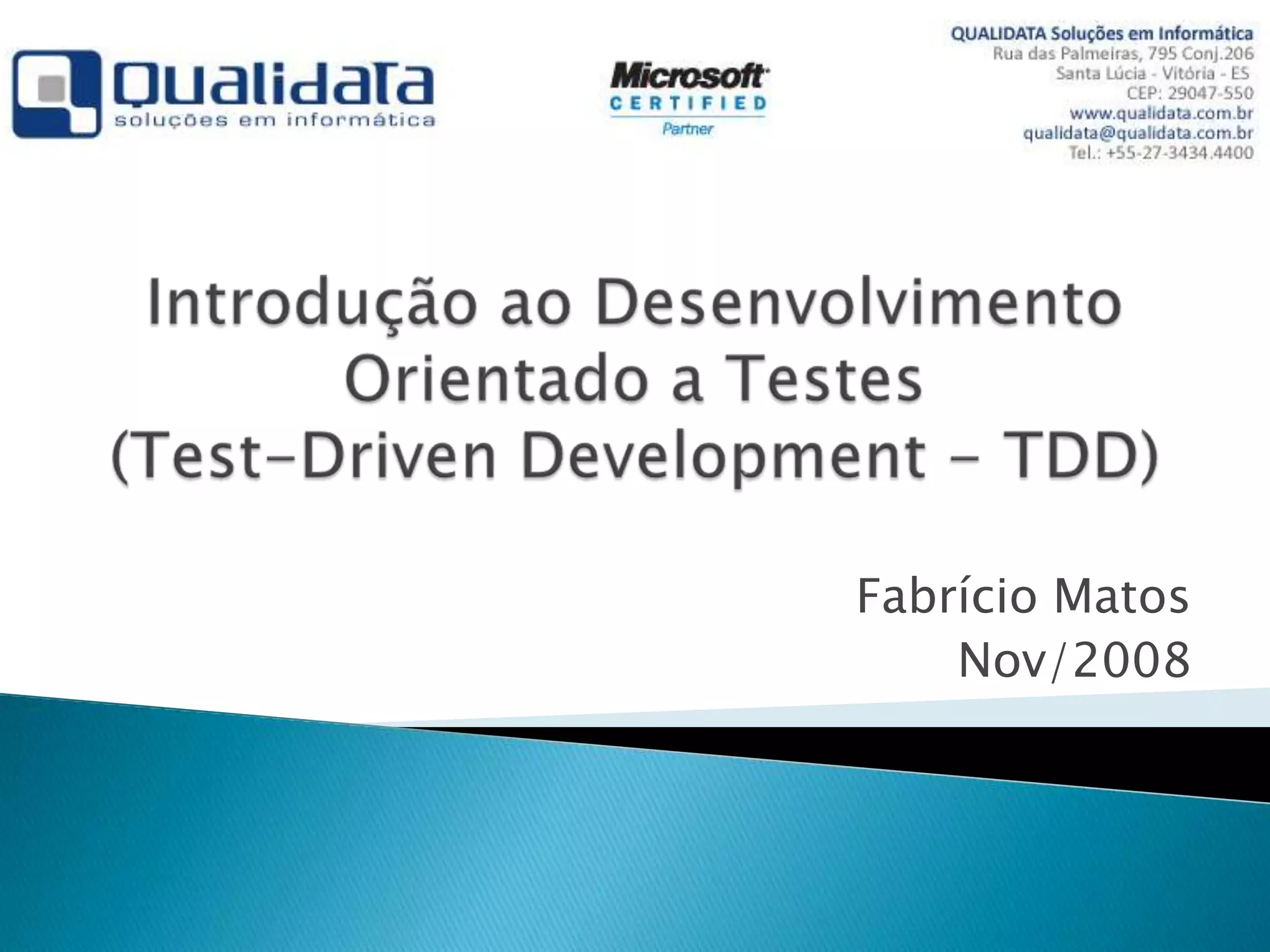 O documento introduz o desenvolvimento orientado a testes (TDD), destacando seu foco em programação a partir de casos de teste para garantir um código funcional e de alta qualidade. TDD promove um ciclo de teste e refatoração que resulta em sistemas menos propensos a erros e melhor documentados, além de favorecer a evolução contínua do software. A metodologia também explora diferentes tipos de testes e técnicas para garantir a eficácia e manutenibilidade do código durante o desenvolvimento.