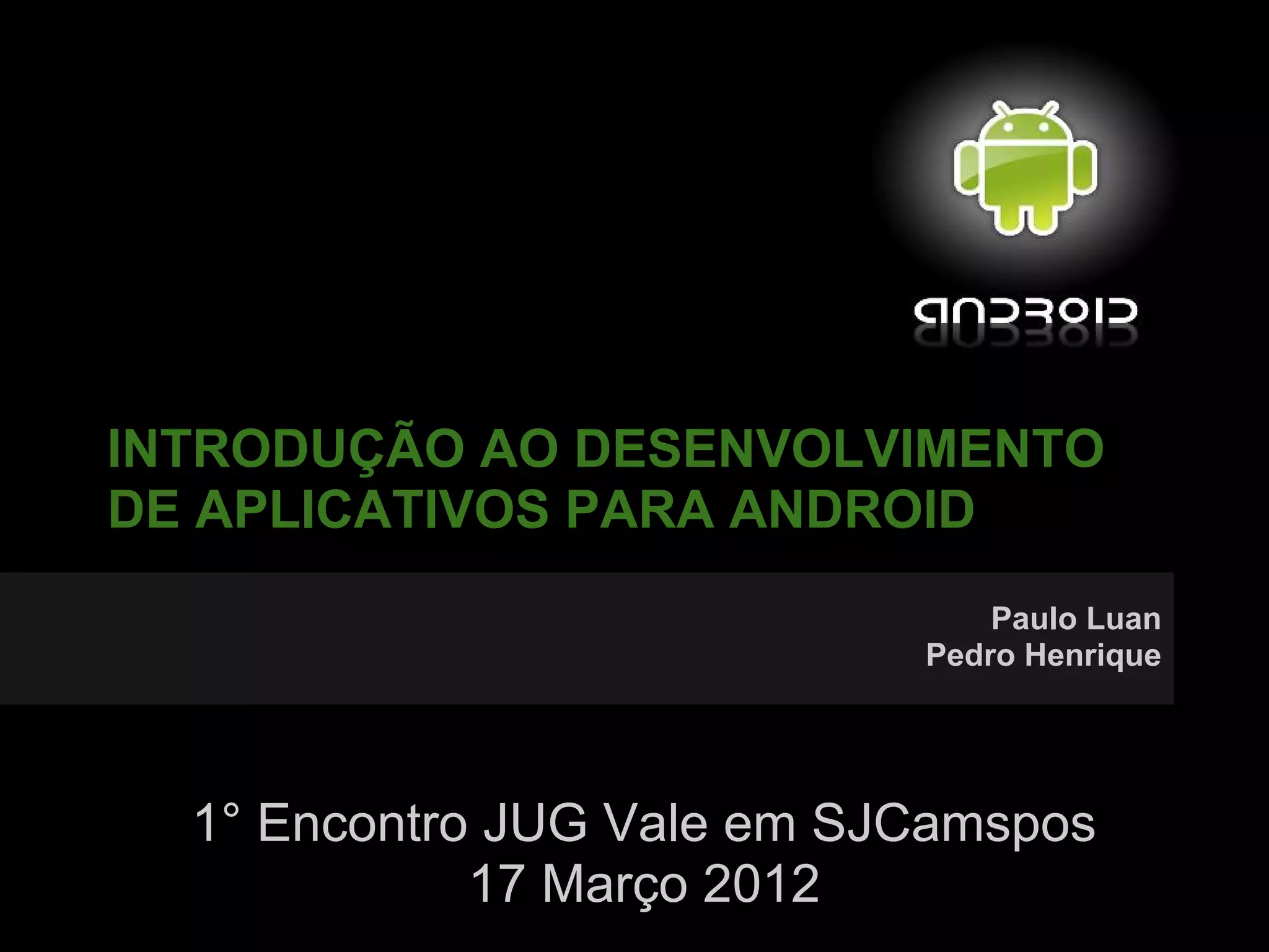 O documento apresenta uma introdução ao desenvolvimento de aplicativos para Android. Ele discute o que é Android, sua arquitetura, componentes como Activity, Intents, Content Providers e Broadcast Receivers. Também aborda Layouts, eventos, listeners e as ferramentas e linguagem de programação usadas no desenvolvimento para a plataforma Android.