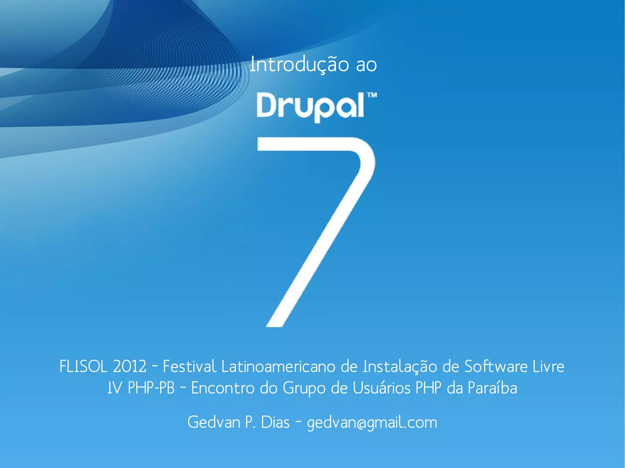 O documento é uma apresentação sobre o Drupal 7, destacando-o como um sistema de gerenciamento de conteúdo (CMS) e um framework de gerenciamento de conteúdo (CMF) popular para desenvolvedores. São abordadas as características, a arquitetura, os tipos de conteúdo e os módulos disponíveis, além das vantagens e desvantagens de sua utilização. O autor também menciona aplicações práticas do Drupal e oferece links para recursos adicionais e suporte à comunidade.