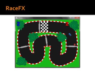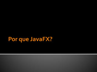 JavaFX é uma plataforma para desenvolvimento de interfaces gráficas ricas baseada na linguagem Java. O documento apresenta os principais conceitos e recursos de JavaFX, como exemplos de código, tipos de dados suportados e animações. Também discute as vantagens e desafios de se usar JavaFX.
