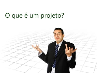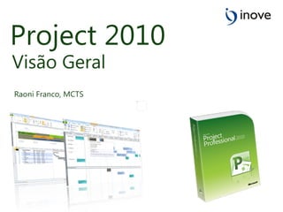 O documento descreve o que é um projeto e como o software Project 2010 pode ajudar a gerenciar projetos. Ele fornece uma visão geral das principais funcionalidades do Project 2010, incluindo agendamento de tarefas, relatórios, controle de recursos, gerenciamento de portfólio e novas ferramentas de colaboração e personalização. Informações de contato também são fornecidas no final.
