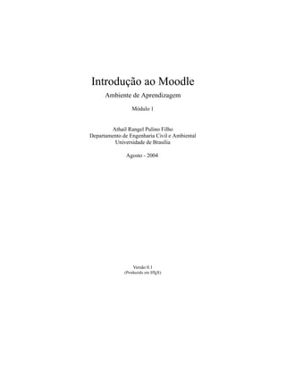 Este documento fornece uma introdução ao Moodle, um sistema de gerenciamento de aprendizagem online. Ele discute o que é o Moodle, como funciona com base na filosofia construcionista, e como alunos e professores podem usá-lo.