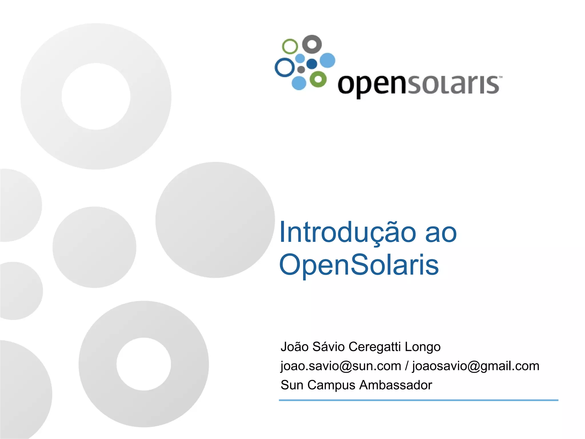 O documento fornece um resumo sobre a história do Solaris e do OpenSolaris. Apresenta as principais características e inovações do OpenSolaris como Zonas, ZFS e DTrace. Explica também como desenvolvedores e usuários podem participar da comunidade OpenSolaris.