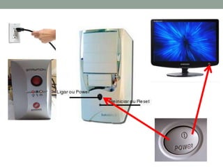 O documento fornece um breve resumo histórico da informática, desde o ábaco até o desenvolvimento dos primeiros computadores eletrônicos. Também descreve os principais componentes de hardware e software de um sistema computacional moderno, incluindo periféricos, memória e sistemas operacionais como o Windows 7.