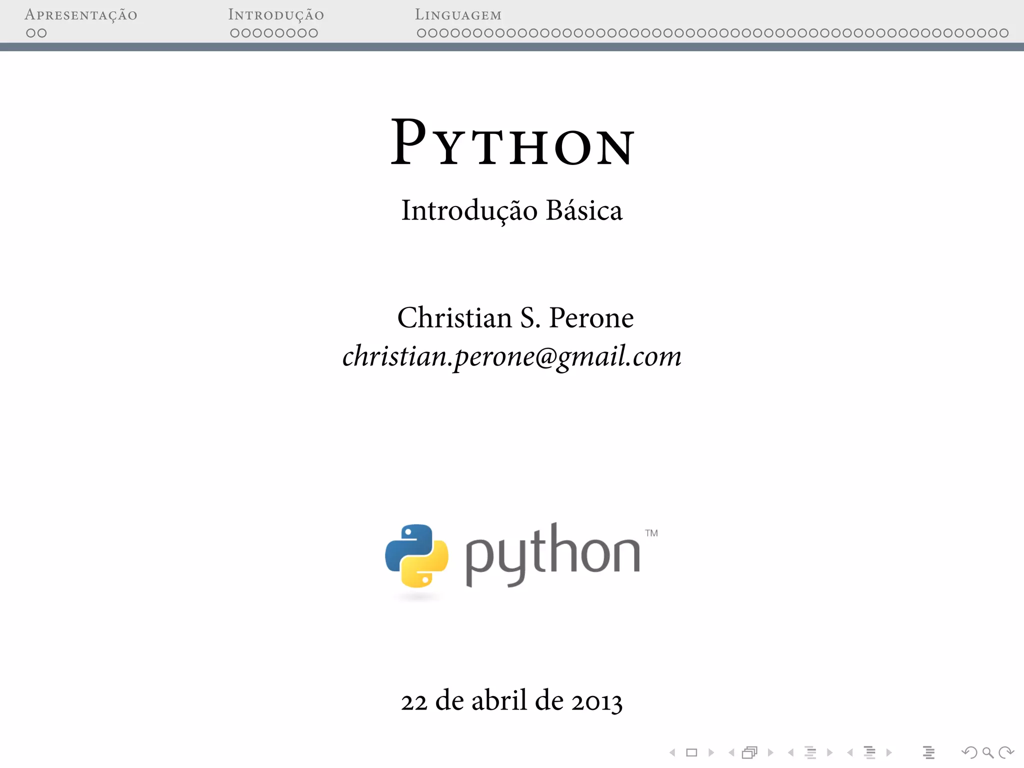 Este documento apresenta uma introdução à linguagem de programação Python. Ele discute as características e implementações da linguagem, tipos de dados como números, strings e listas, e conceitos como variáveis, funções, orientação a objetos e módulos. O documento é dividido em três partes cobrindo tópicos como apresentação, introdução e detalhes da linguagem.