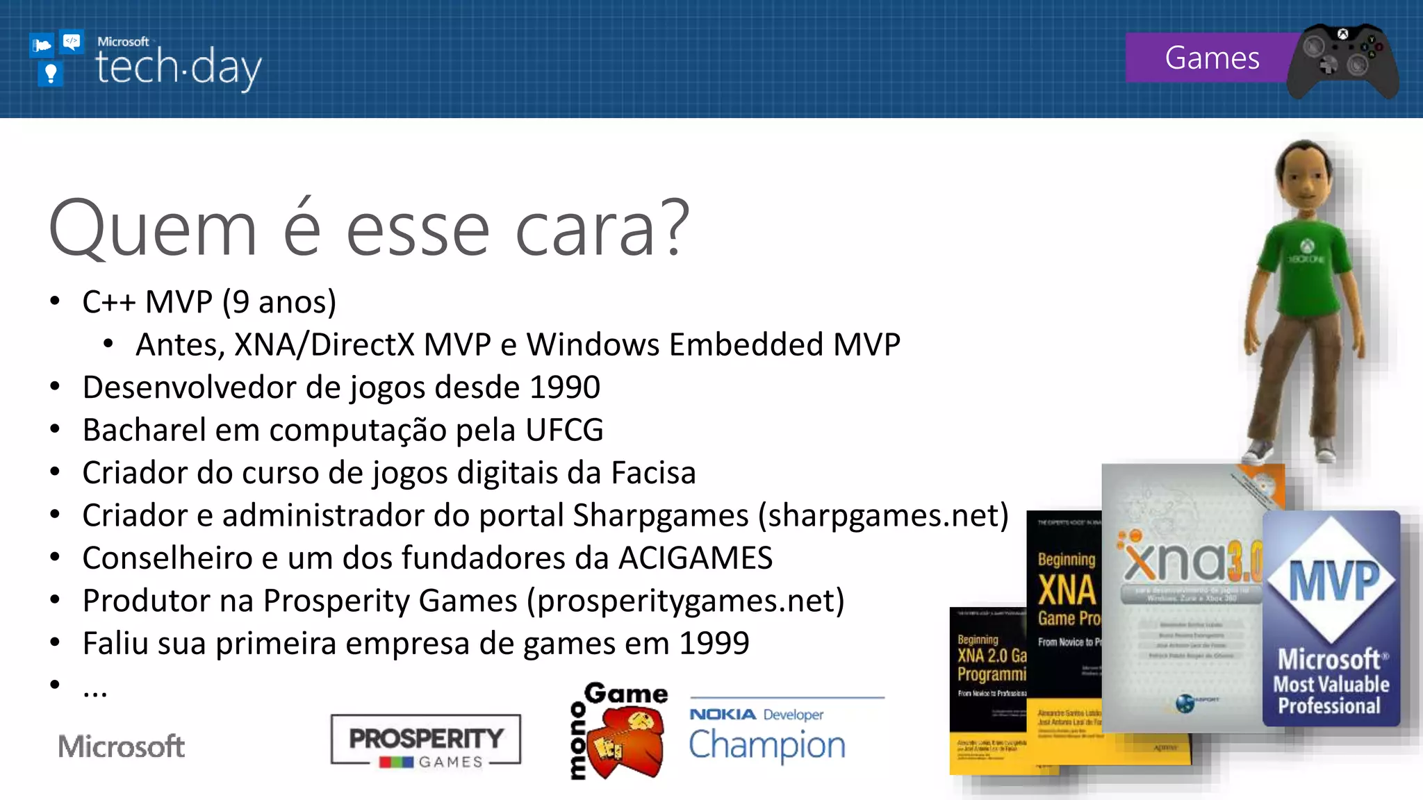 O documento apresenta José Antonio “jalf” Leal de Farias, um desenvolvedor de jogos experiente. Ele dará uma introdução ao DirectX, abordando sua evolução, elementos gráficos, GPUs, shaders, transformações 3D e texturas. O objetivo é compreender como usar o DirectX para criar jogos sofisticados, mesmo que apenas entendendo tutoriais online.