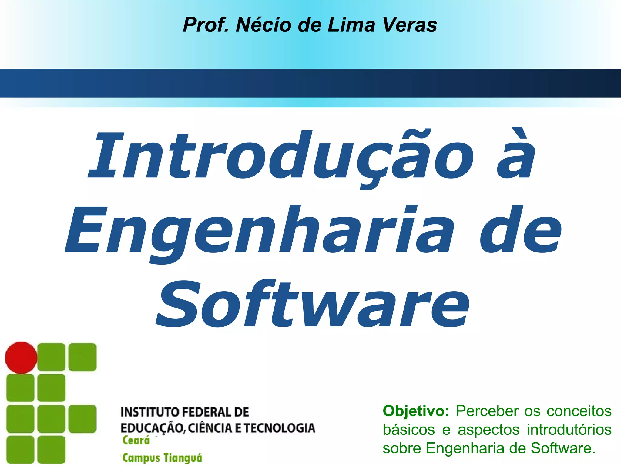 O documento introduz conceitos básicos de engenharia de software, incluindo: (1) a definição de software e a crise histórica no desenvolvimento de software, (2) a introdução da engenharia de software para lidar com os desafios por meio de modelos de processo e gerenciamento de projetos, e (3) os principais modelos de processo e gerenciamento de projetos de software.