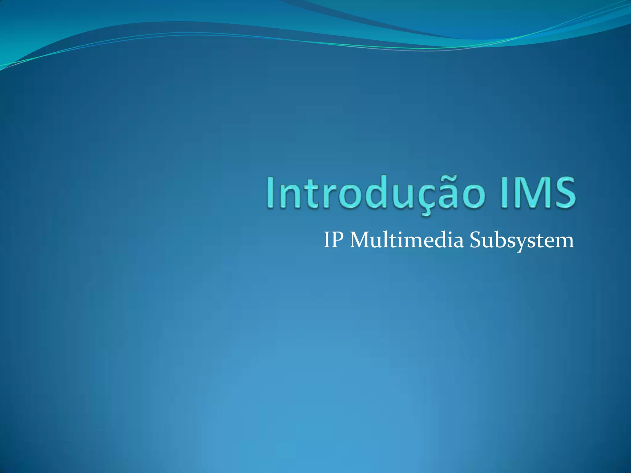 ConceitoIMS é umamaneira de distribuir multimídia, independente do dispositivo ou do meio de acesso.É padronizado por 3GPP, 3GPP2 e TISPAN.Arquitetura é baseada no protocolo SIP em redes all-IP.