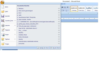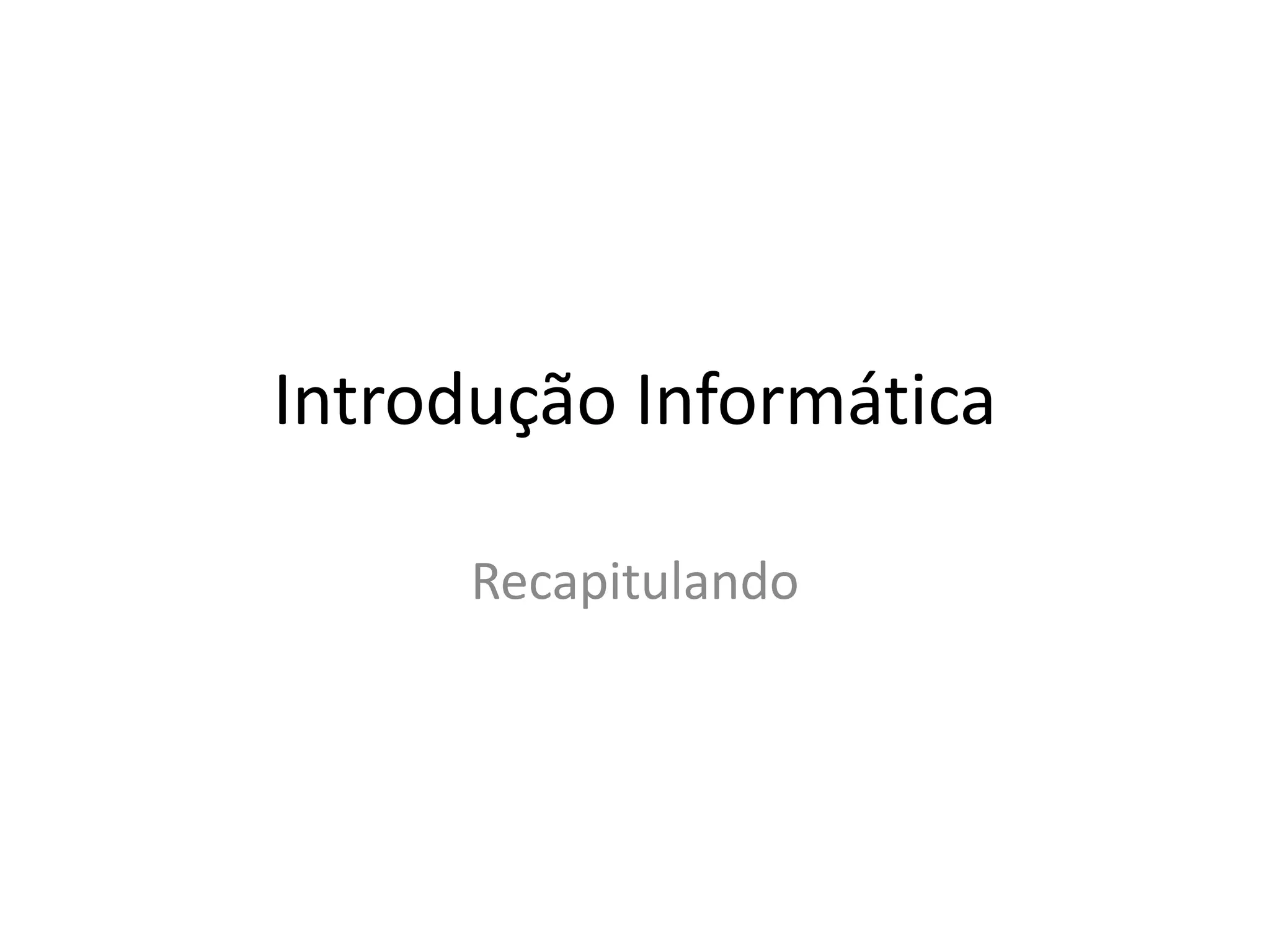 O documento descreve os principais componentes de um computador, incluindo hardware como a torre, monitor e periféricos. Também explica o software, como sistemas operacionais e aplicativos de produtividade. Por fim, fornece instruções sobre como formatar texto em um processador de palavras.