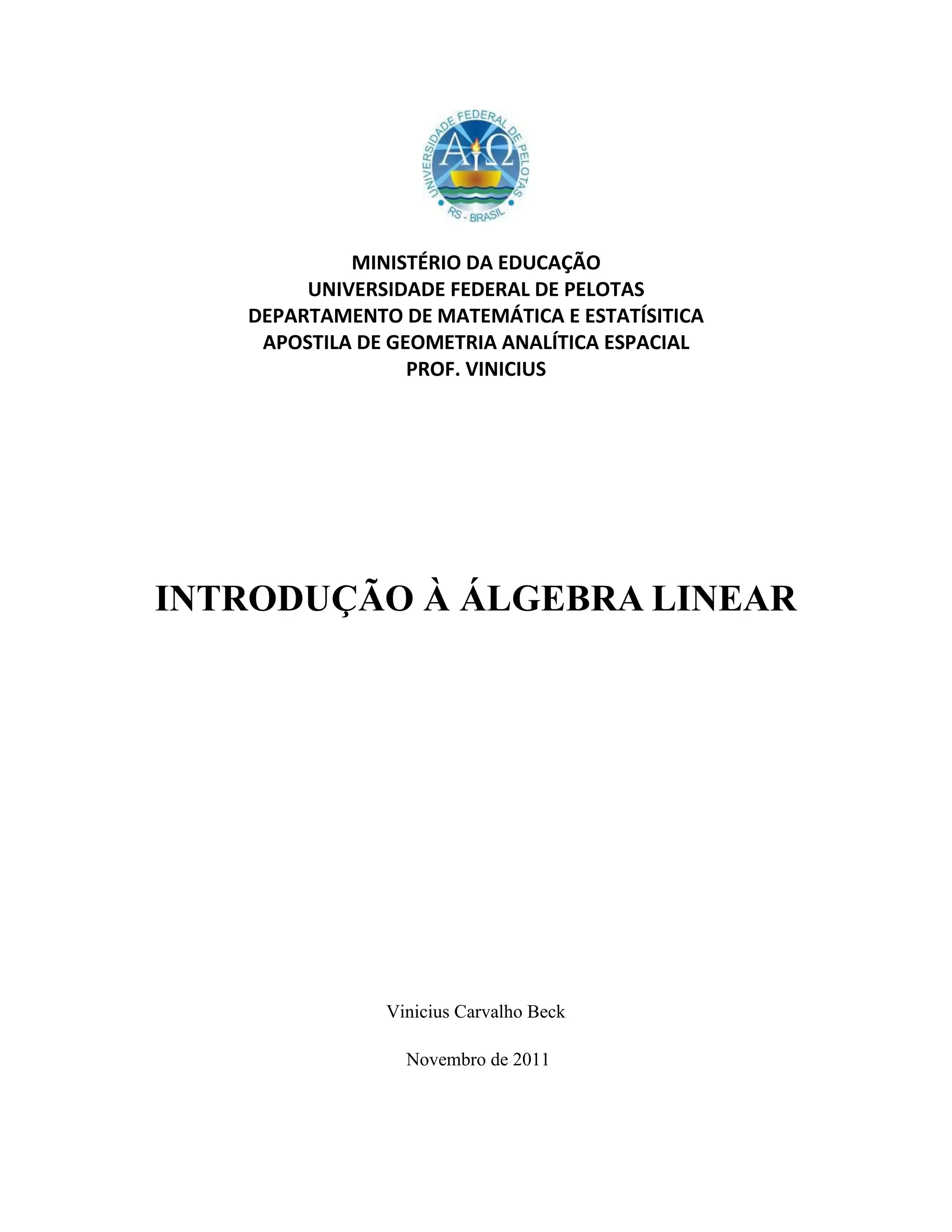 1) O documento apresenta conceitos fundamentais de álgebra linear como espaços vetoriais, subespaços vetoriais, combinações lineares, independência linear e bases.